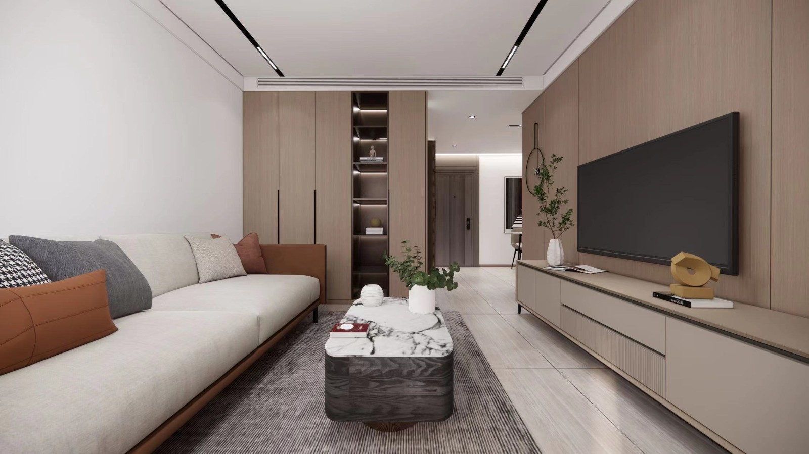 电视背景墙和沙发都是家中面积比较大的一面墙,使用木饰面装修,不仅能聚焦空间的中心位置,也能凸显温馨自然的家居氛围。