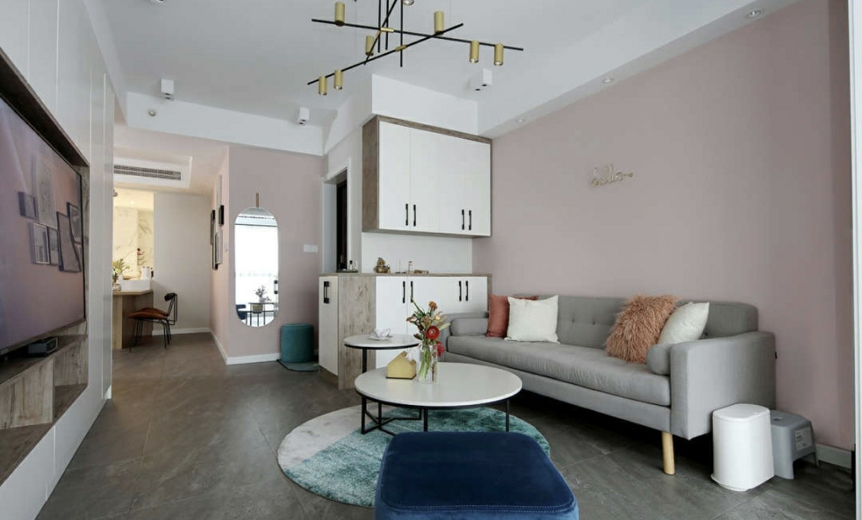 这套案例,业主对色彩要求较高,设计师采用了时尚浪漫的脏粉做主色调,搭配金属元素、原木、大理石,打造个性美观兼顾功能性的生活氛围。