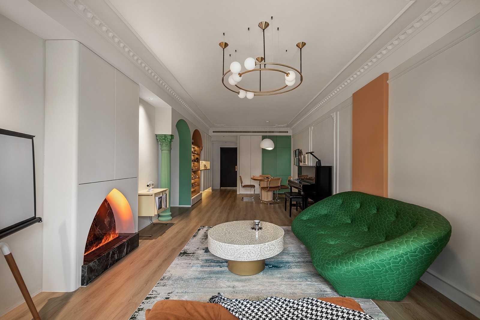 几何是空间内划分区域的内建筑装置,亦是风格基调奠定者,也是潮玩热爱的落脚点。几何的节奏,对称的庄严,与法式雕花的精致,彼此应和,相互消解,将归家的仪式,和温柔的优雅汇于生活的日常动线里。