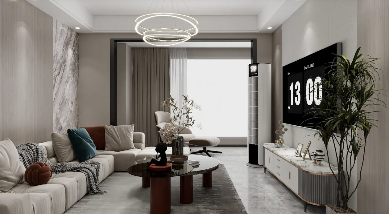 客户希望有色彩搭配,那在一进客厅时就要体现出来色彩上的用心程度,所以我们使用了对比色增强了色彩视觉冲击感,给人低调又不失色彩的搭配。