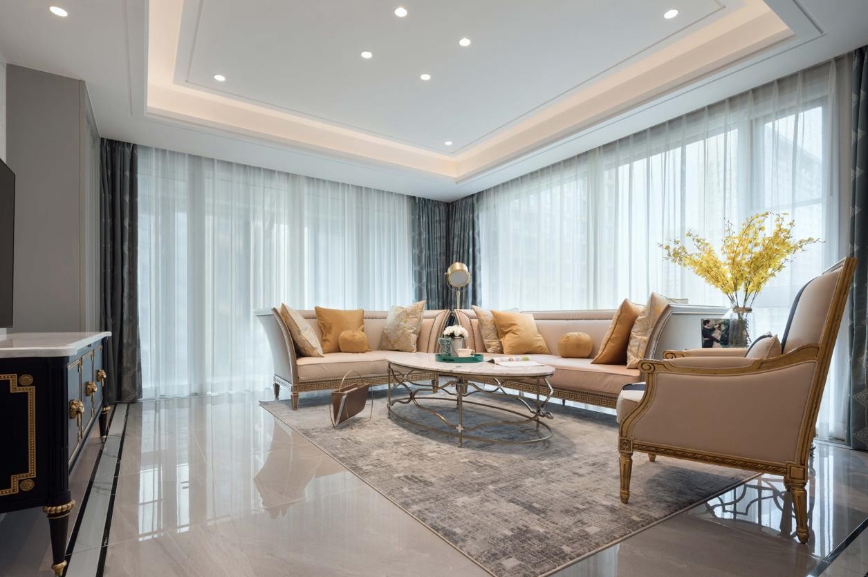 本案色调以烟灰色坐稳中庸,再将其他色彩有度展开,希望以打造品质与独到的生活美学为初衷,调和轻奢与素雅的冲突,以现代生活需求为考量,展现和谐的生活美学。