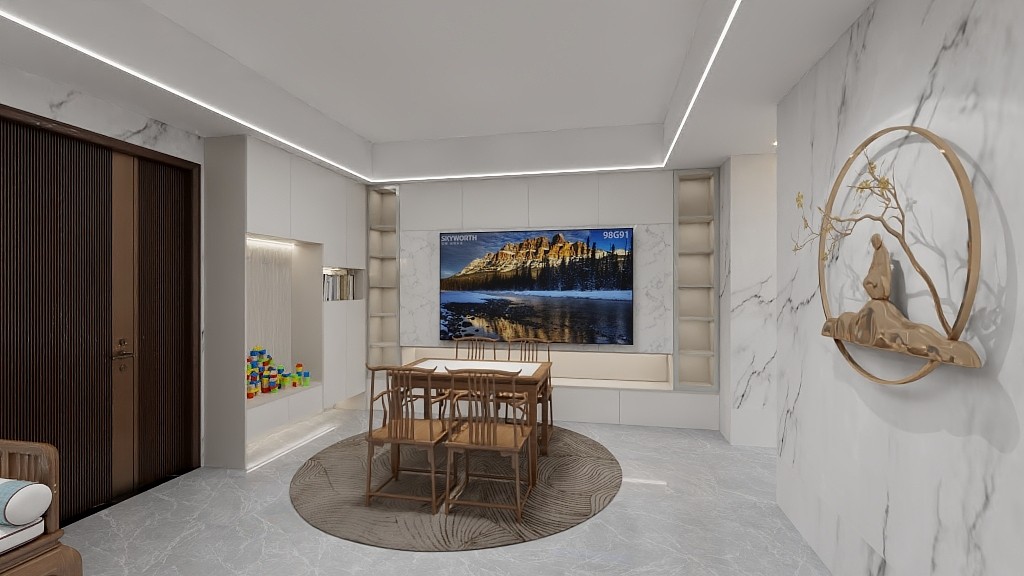 传统中式的客厅设计相比,新中式的客厅设计整体上的线条更简洁利落
