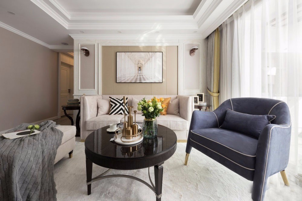 案例说明:业主想要轻奢风格的设计,但是相对于现代大众的现代轻奢业主更想家显得温馨,设计师选择了美式轻奢风格不仅在设计上巧妙的花了心思,在装饰选择家具选择上也给了业主一定的搭配指导。 设计理念:色彩鲜明,层次感强烈 色彩是定位风格的重要因素,想要打造出轻奢的感觉,必然要经过巧妙的色彩搭配,才能显现出丰富的魅力。 在色彩选择上,轻奢风格一般会选用带有***感的中性色,诸如驼色、象牙白、奶咖等。
