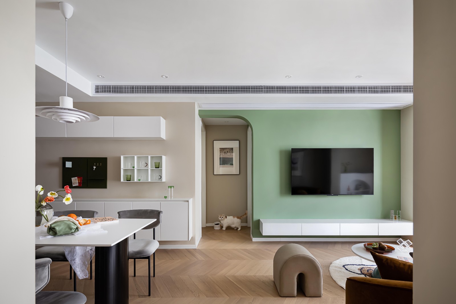 床头背景墙暗藏灯槽设计,使床头灯连为一体