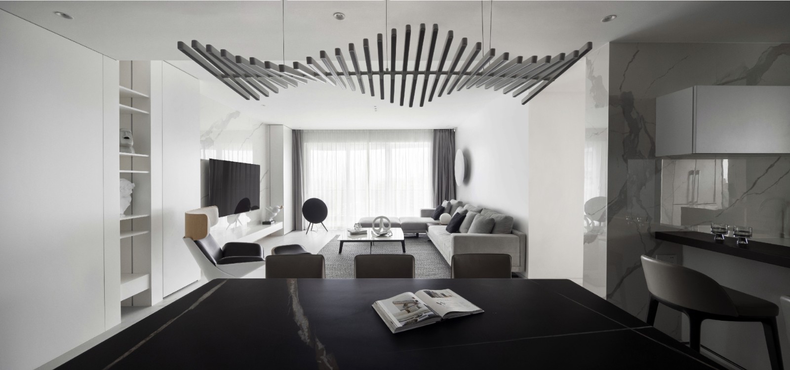 风格选择业主喜欢的极简主义风格,搭配铁艺材质衬托