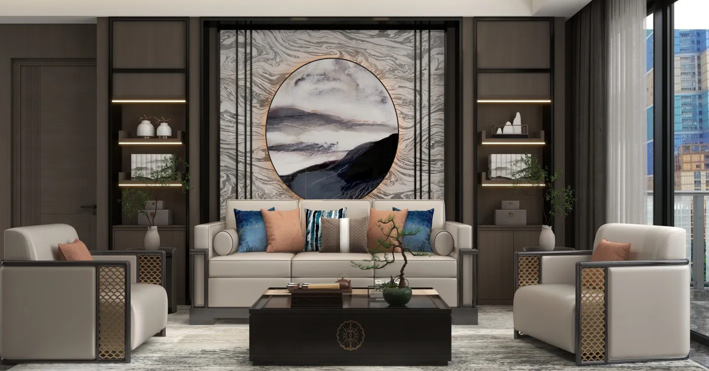 新中式风格是中式元素与现代材质的巧妙兼柔的布局风格