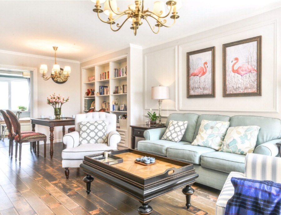 从客厅看过去,客餐空间相互借景,开敞舒适。不同形体的沙发让空间更生动。
