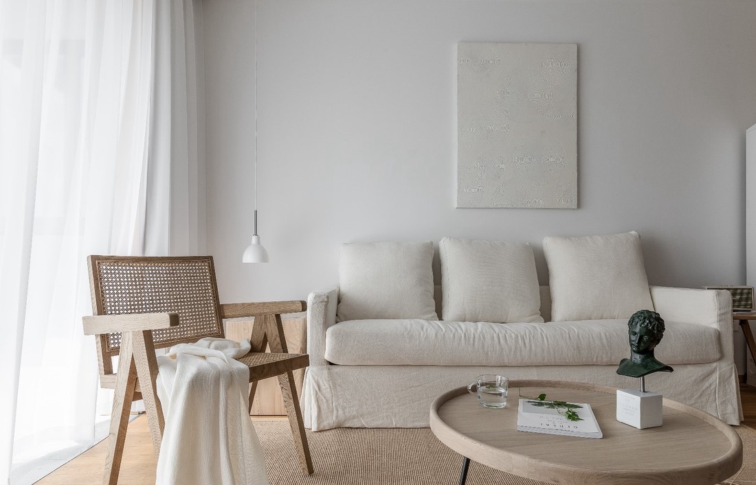 把“房子”变成“家”,业主小姐姐描述着自己的喜好,描绘对自己以后家的幻想。这是业主的第二居所,一切围绕着放松、温润、简单的风格定位展开