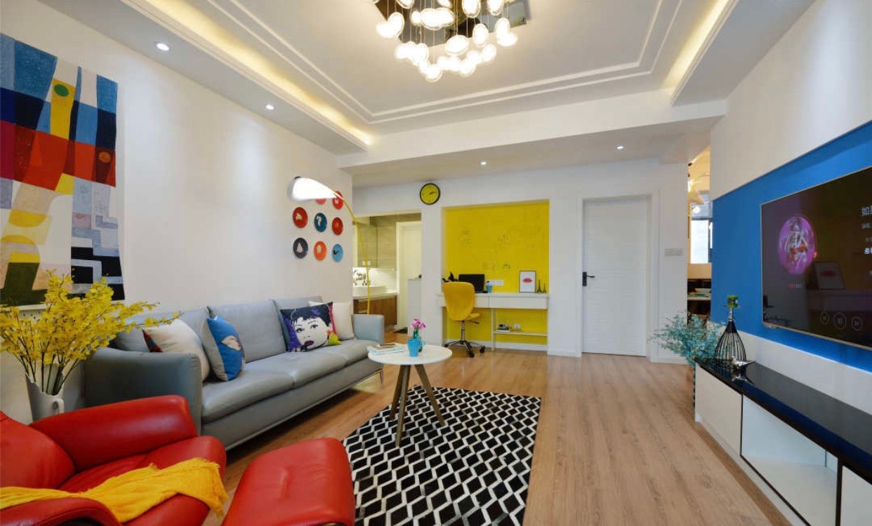 灰色的沙发,以及跳色的背景,清新文艺有格调。