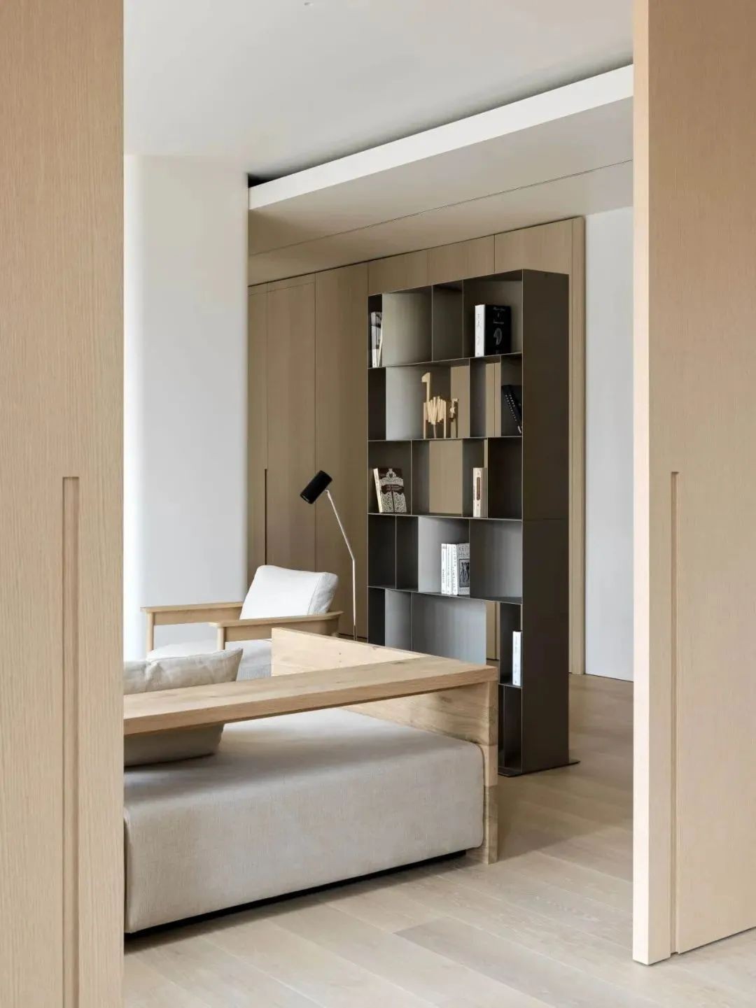 选用原木作为空间的主要材质,柔和的色调营造出轻盈的视觉感受。在造型设计上摒弃了繁杂的装饰元素,干净利落的线条展现出现代极简主义下的写意美感。