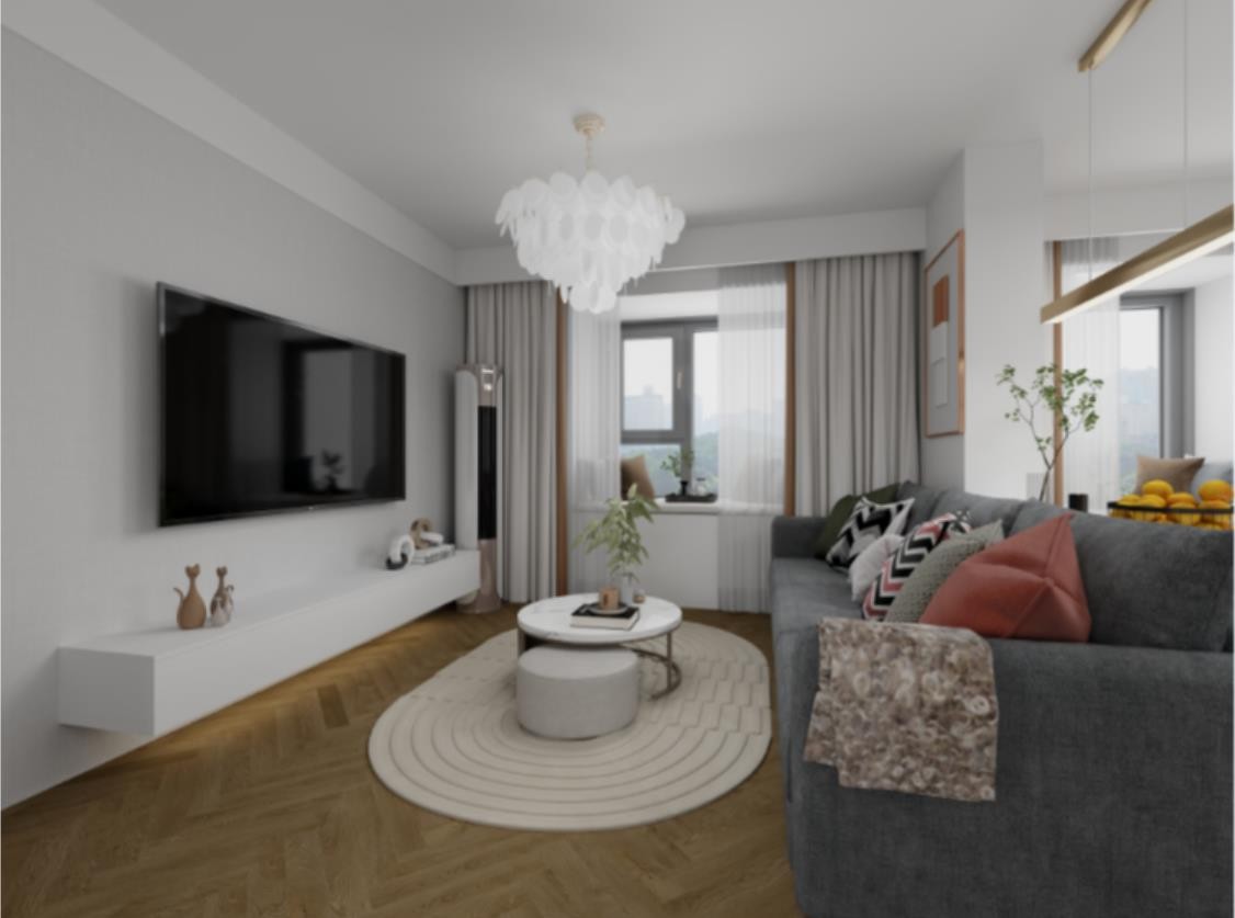 小卧室和客厅做了空间整合,半墙设计,开放式书房衔接客厅,营造视觉上视野开拓,功能区不丢失。