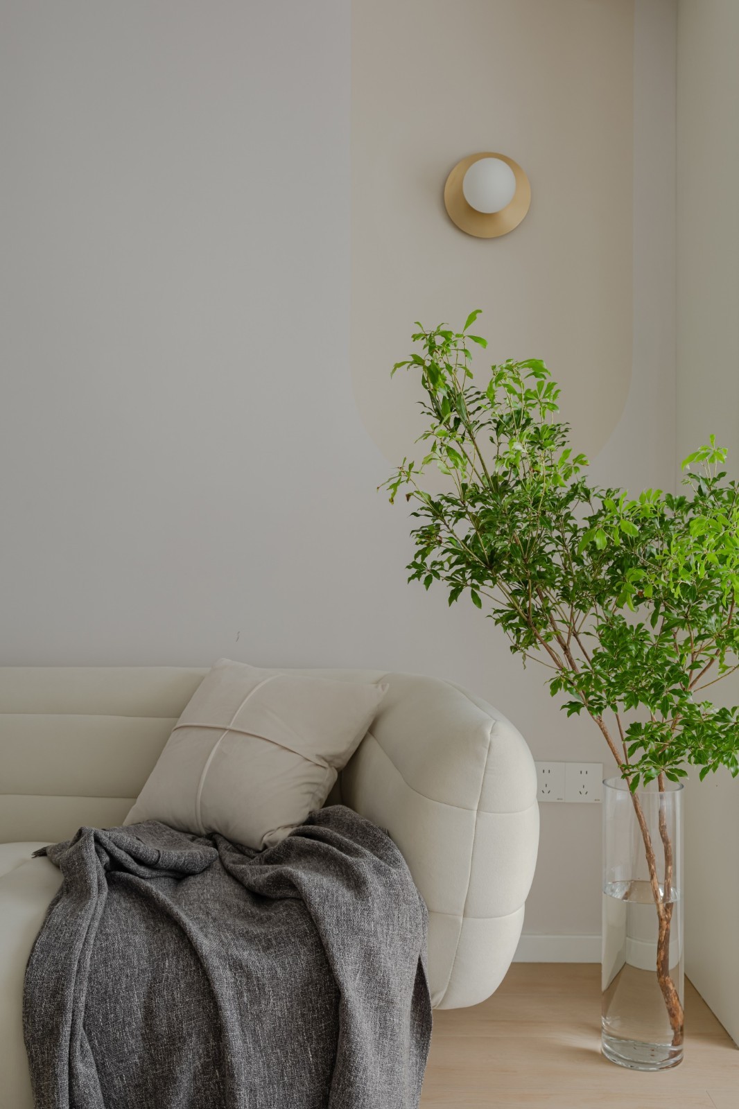 沙发选用的是浅米色的“香蕉船沙发”,搭配小巧的云朵茶几,绿植给整个空间增添活力。