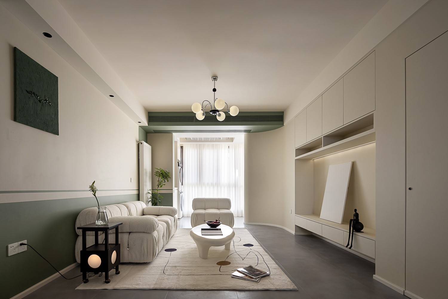 客厅并未放置电视,但是留出了位置,一个简单的装饰尽显大方