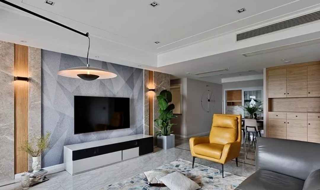 客户一直强调简洁大气上档次,所以定了电视墙局部石材同对面楼梯石材相呼应。200:200:1000的比例做了石材、木饰面、石材,左右两边对称。