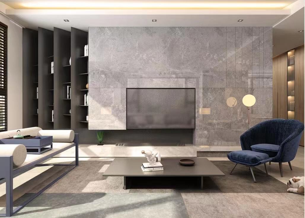 呃: [图片] 呃: 客厅采用了灰色大理石做背景墙,淡雅的沙发以及墙饰则调节了气氛,使整个空间显得亲和,但不缺失时尚感。