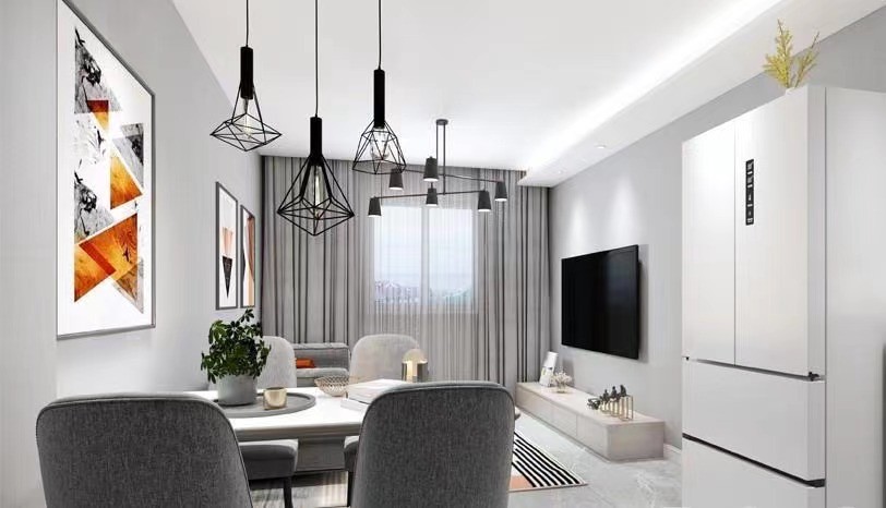 考虑到客餐厅的面积,所以墙面没有做过多的设计,只是用了浅灰色的墙漆加一些装饰画。这些简单的设计,反而使空间感更好。
