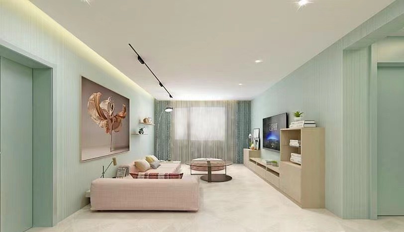 客厅主色调主以大量白色以及淡绿色为主,现如今去主灯化悄然成为一种潮流,硬装为王的时代已经一去不复返。所以色彩在合理的灯光下,能焕发出颜色另一面,开启不同的照明方式,让整个居室变换出多个生活场景