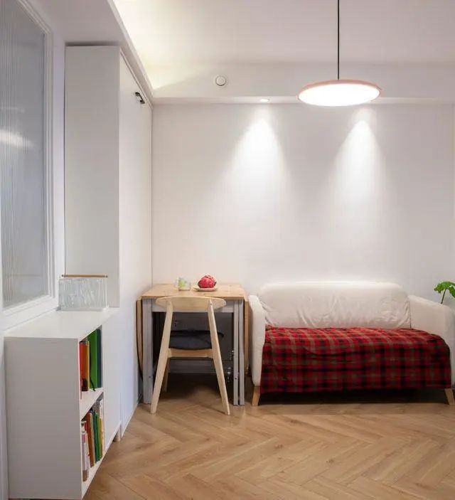 小沙发和可伸缩的餐桌***地为孩子预留了充足的玩耍空间,视觉上打破了小户型容易拥挤的印象。边的小开架也为存放儿童绘本提供了极大的方便。