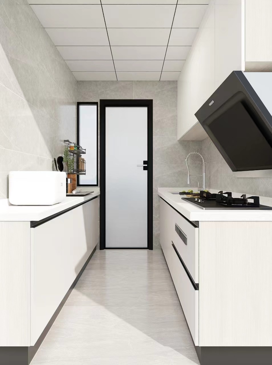 厨房空间相对小,除了满足日常使用,地柜位置做了个内嵌式拉篮