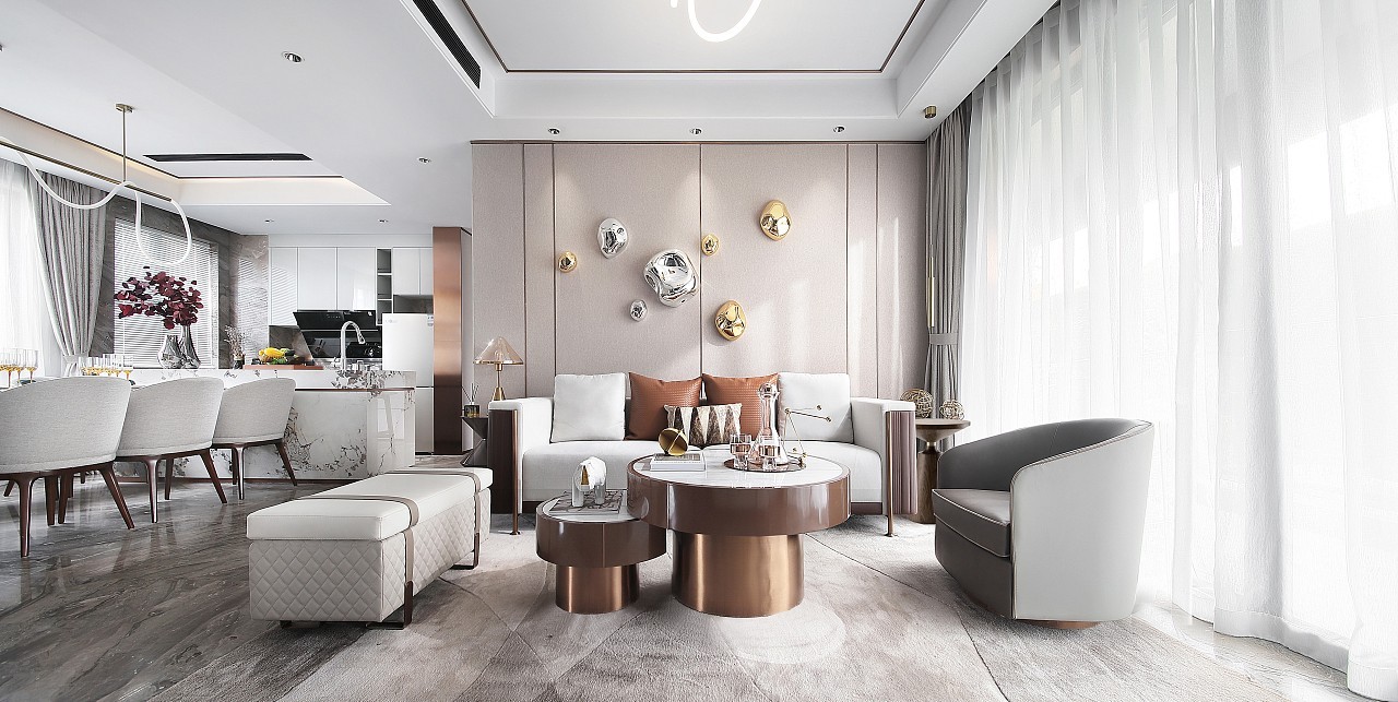 轻奢风的家非常注重空间线条感,从顶部吊顶、墙面线条等地方可以体现出。轻奢风的家非常注重空间线条感,从顶部吊顶、墙面线条等地方可以体现出。