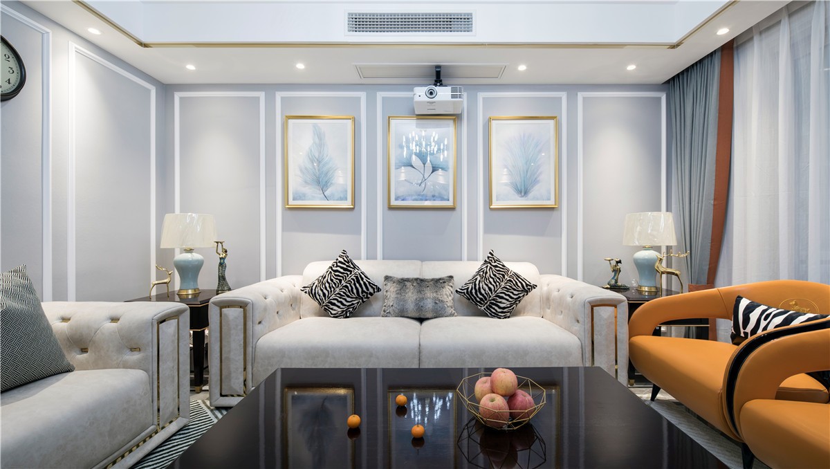 客厅户型方正规整,空间规划简洁明了。明净清透的白色为基底,运用开放性设计手法,令空间开阔统一,洋溢出年轻化气息。