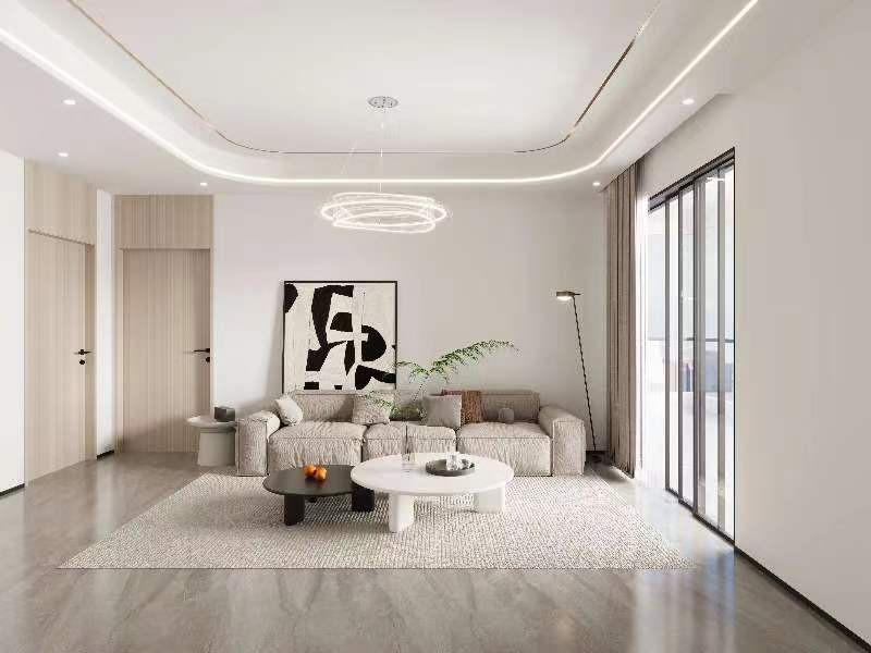 客厅采用现代的装饰物品,整个吊顶采用弧形,使得空间简洁立体