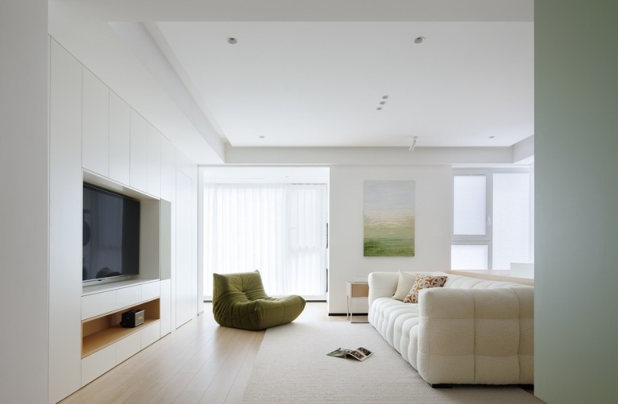 全屋的基调为纯净的白色+原木色,局部点缀清新淡雅的薄荷绿,让整个家更显得整洁、舒适、放松,有一种***的愉悦感。