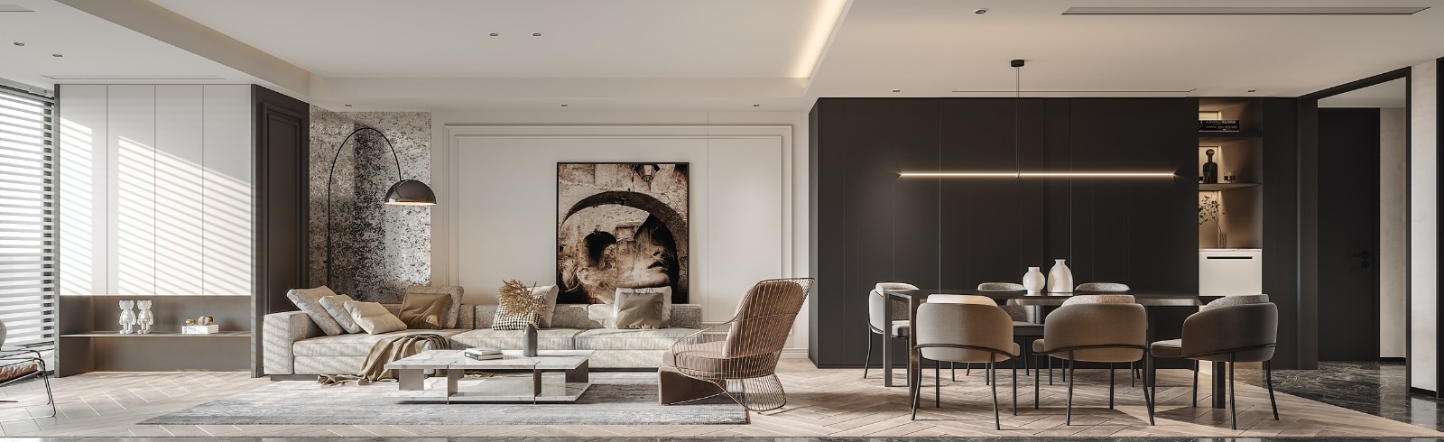 侘寂风家具,吊线灯营造氛围。