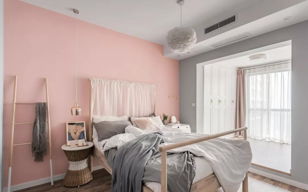 主卧给床头背景墙刷上了粉色调,满满少女心,真的好漂亮。