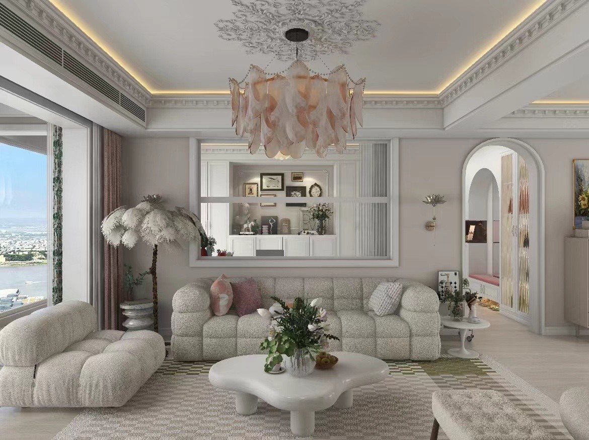 浪漫、华丽的轻法式结合简约的设计,透漏出清新奢华的美态,同时沿袭法式得传统优雅与贵族气息,住宅变得漫、舒适、自在.