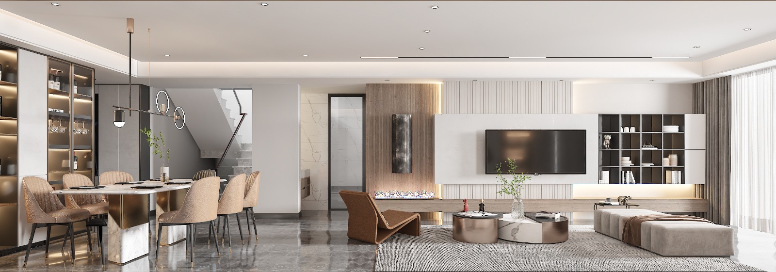 本案以杨女士一家五口为设计原型,杨女士希望居家环境主要实用同时通透大气,设计师采用现代风格设计,其风格造型干脆利落,材料有光泽感,空间通透,将色彩、设计元素、原材料、照明简化到最少程度,以满足杨女士一家的生活要求。