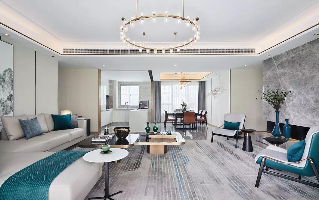以一些简约的造型为基础,添加了中式元素,使整体空间感觉更加丰富,大而不空、厚而不重,有格调又不显压抑