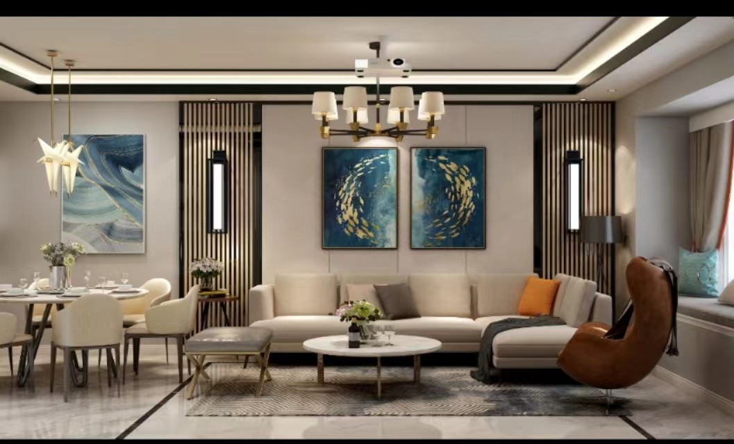 本方案融合现代简约的几何图案及线条为设计元素,再根据户型深入理解并提炼,用现代的符号将中式的神韵体现出来。