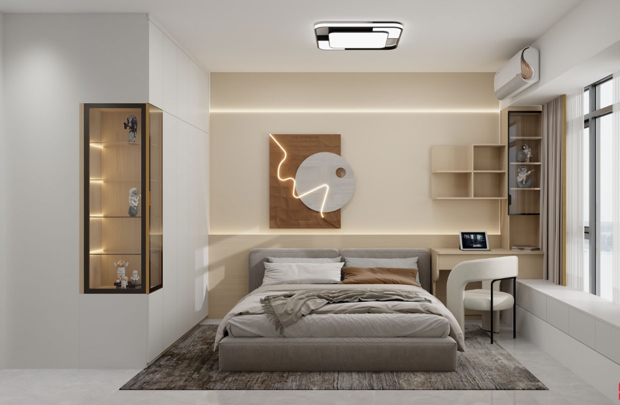 三个房间,其中一个婴儿房改成电竞房,日常不仅用于打游戏、娱乐,如果有朋友来家里还能作为客卧,有生宝宝的打算,还能作为儿童房的存在!! 做对设计真的很重要,高空间利用率才是对房子的尊重