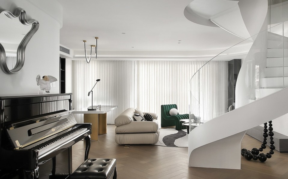 因为业主喜欢黑白色调的风格,在通过我们的交谈后发现业主两夫妻都有着很高的学历背景和审美,因此我们建议在黑白的色系下融入金色和绿色用以点亮空间的色彩和丰富视觉层次,我们希望整体能打造一个充满艺术氛围的实用之家,业主的接受度和包容度都十分的高,因此才造就了我们这一次愉快的合作。