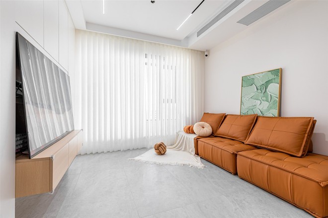 作为情感上的家庭中心,屋主希望客厅减少不必要装饰和填充,将主导权交还于家人,增进彼此的交流互动。客厅精简家具,摈弃传统地毯、茶几设计,保留敞轩活动区