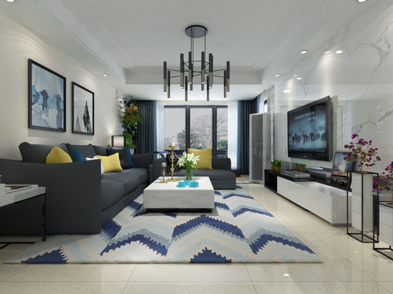 现代简约风三居室 三室两厅两卫 123平米