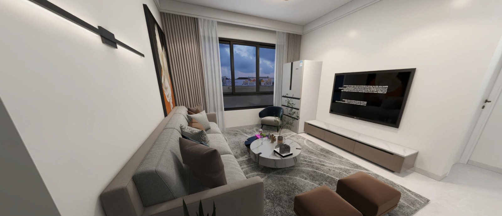 1.由于面积属于小户型,所以选择将阳台包起来,与客厅融为一体,打造室内休闲阳台,同时还能满足室内的空气流通,顶部采用双眼皮吊顶设计,增加了客厅的时尚感 2.全屋通铺白色磨砂瓷砖,不仅耐看而且防滑,是小户型装修的***选择,再搭配上深色的软装,色彩层次感瞬间凸显 3.电视背景墙采用白色乳胶漆进行装饰,简单且***,旁边的冰箱位置也方便了日常的需求,同时也将空间更好的利用起来