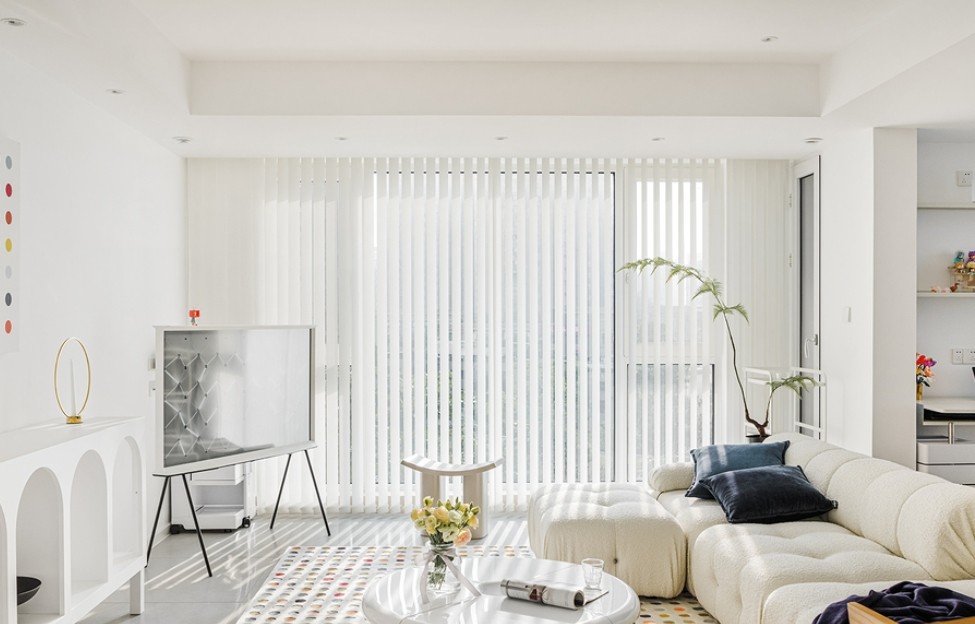 本户是西边户,在客厅的西边有一个落地窗,是低楼层,外面可以看到满眼的绿植,四季搭配明亮的色调,动人心弦。