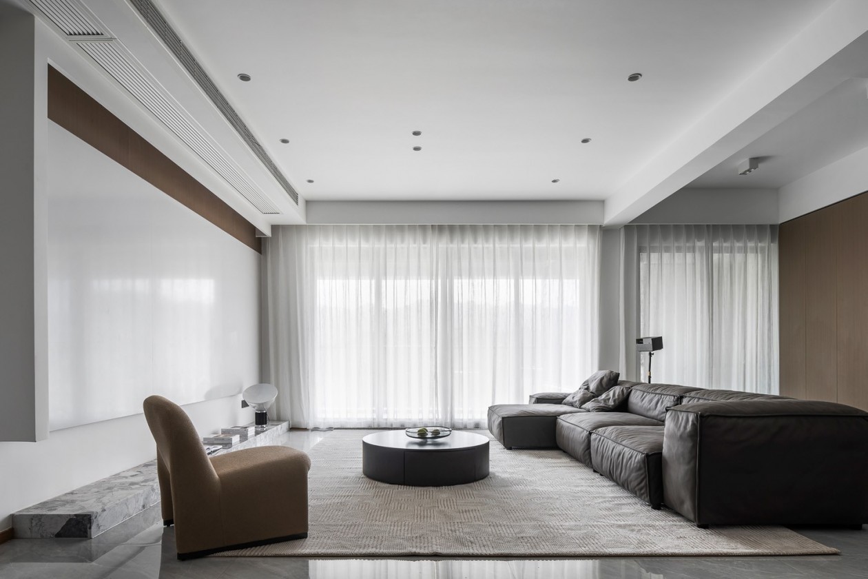 全屋黑皮沙发给人慵懒感,取消电视柜做地台