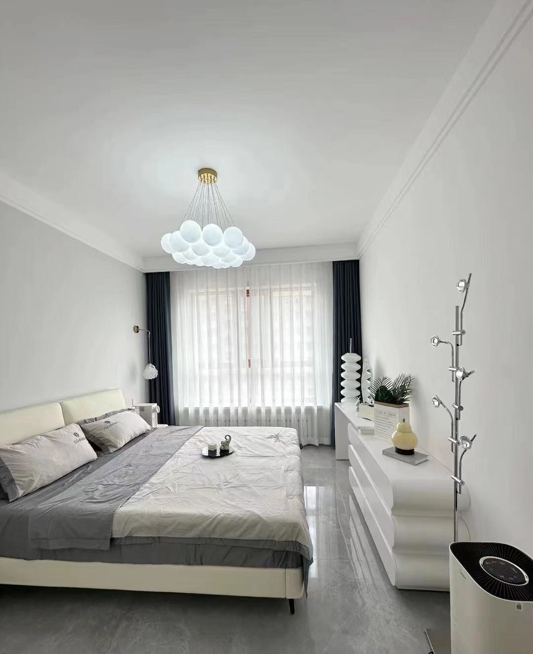 房间以灰色系列为主,简约温馨
