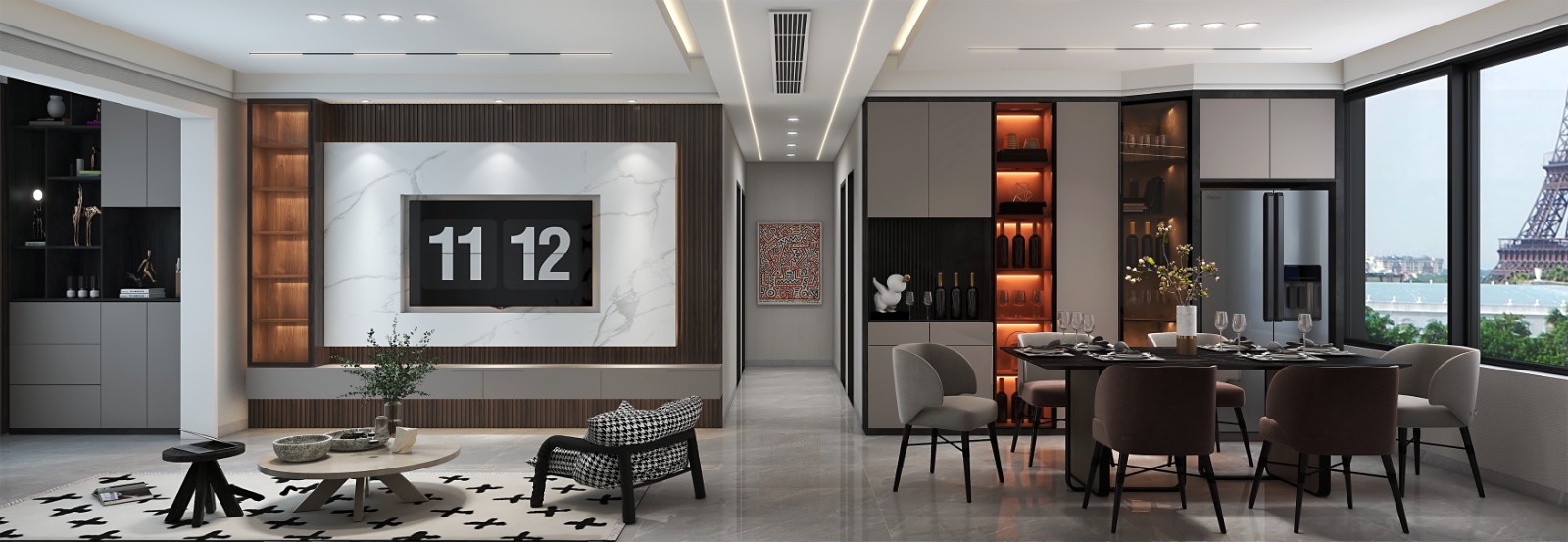 黑白灰的现代风格彰显不凡。在色彩搭配上来看,黑、白、灰三色是非常经典的配色方案,稍加以点缀就可以使整体空间变得典雅时尚,而且还富有设计感,深受当代年轻人的喜爱与追捧。