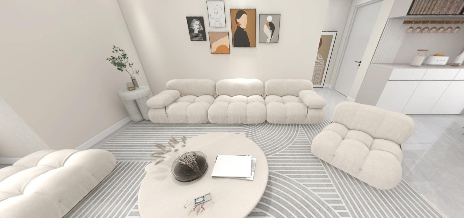 1.客厅整体以白色为主,线条设计流畅不呆板,呈现出整个空间***的氛围感,搭配上暖色系的云朵沙发和灰白色线条的地毯,使得整个空间温馨且安静 2.采用白色乳胶漆通刷电视背景墙,悬空电视柜穿插到收纳柜中形成一个整体,使得整个柜子具有层次感不呆板,零缝隙嵌入的激光电视也让整个背景显得更加***