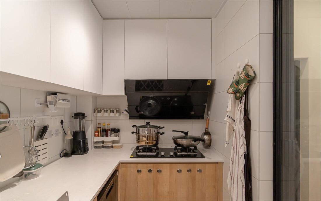 厨房操作台采用L型布局,高效利用转角空间,合理分配洗、切、炒三片工作区域,让下厨动线更加流畅。