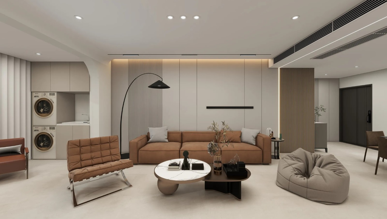 本户型空间面积较大,可以更好地展现设计,且本设计现代简约风格较为明显。