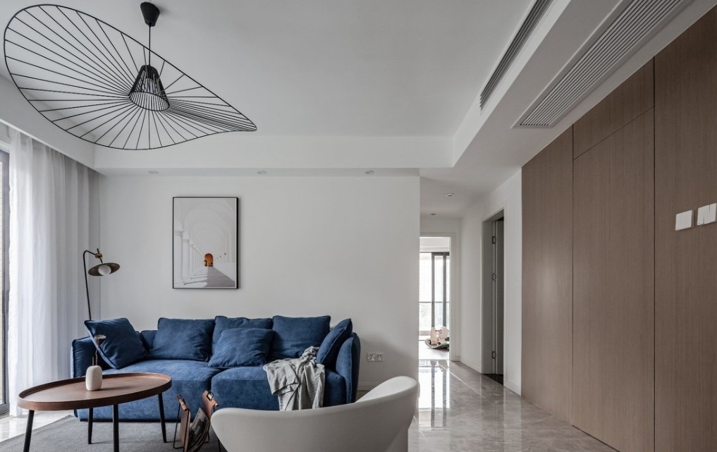 木色KD板与大面白墙的结合,让素白的墙面没那么简单枯燥,同时他还隐藏着超强收纳功能的储物间。