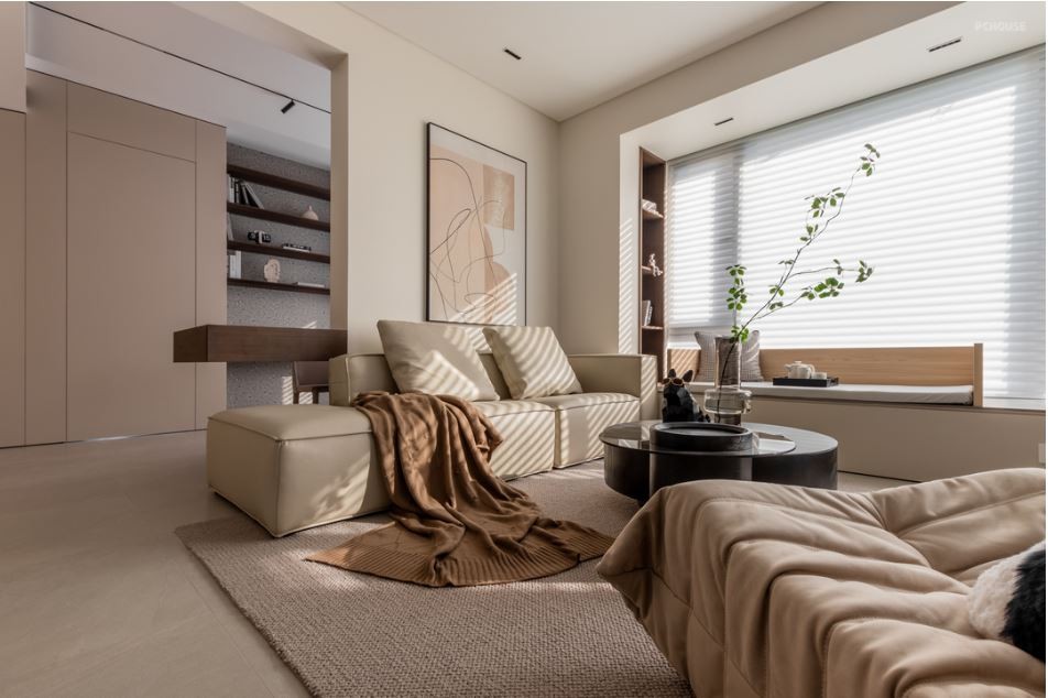 大面积的窗户让屋外的风景成为家中四时常新的艺术品,为客厅提供了充足的自然光线与通风。以功能、生活动线为核心,采用围合型沙发布局,视觉上端庄大气,充满家的温馨感。