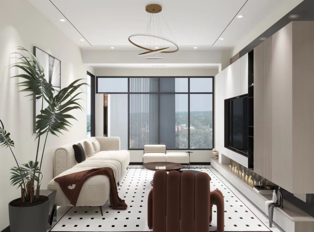 现代简约风格设计是简约、舒服,并没有不必要的装饰,线条简单,室内空间设计大气。