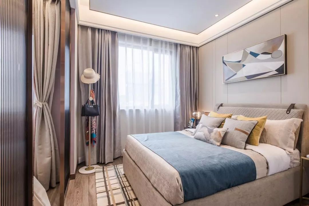 床尾角落还放了一个金属质感的衣帽架,让卧室氛围更加实用而又情趣雅致。