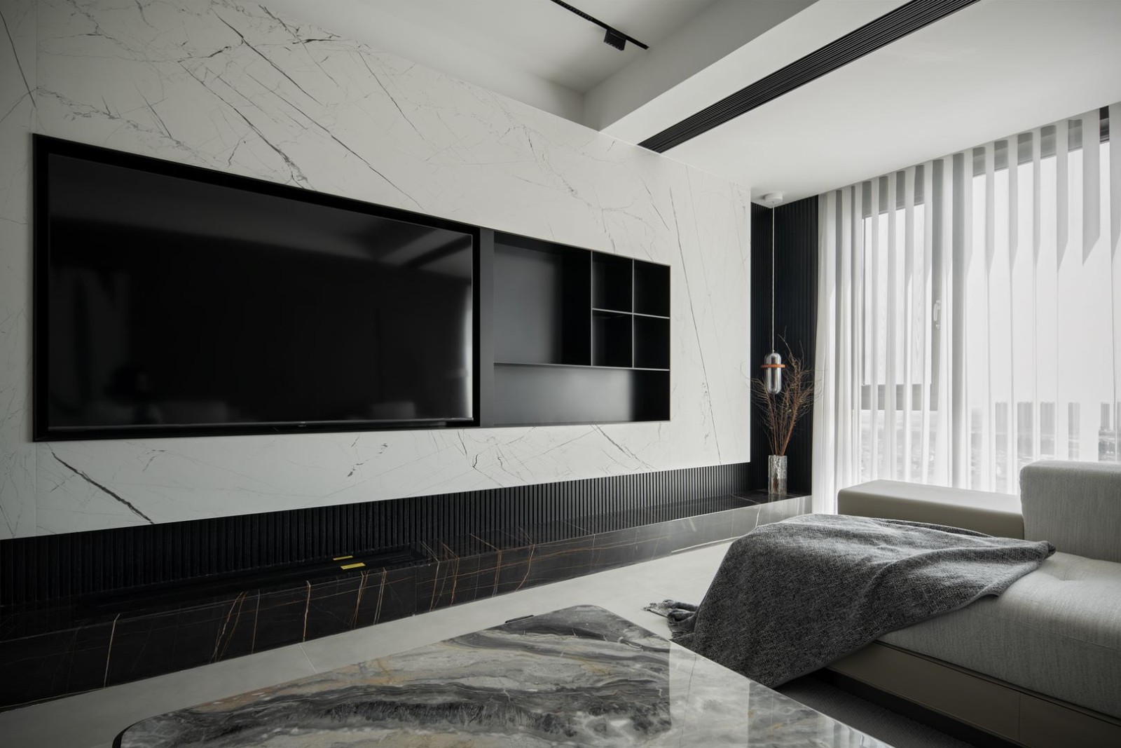 角落添置的潮玩,带入更多不羁的时尚,看似不相容的元素设计,却搭配出高雅的意境。这是设计元素的交融,也是空间层次的衍变。